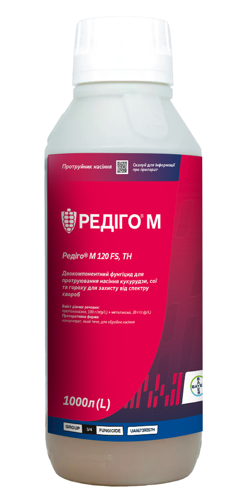Редіго® М 120 FS, ТН - двокомпонентний фунгіцидний протруйник насіння, який ефективно контролює широкий спектр хвороб що виражені на початкових стадіях розвитку кукурудзи та сої. Препарат має сприятливі токсикологічні та екотоксилогічні характеристики, відрізняється м’якістю дії на культурну рослину.